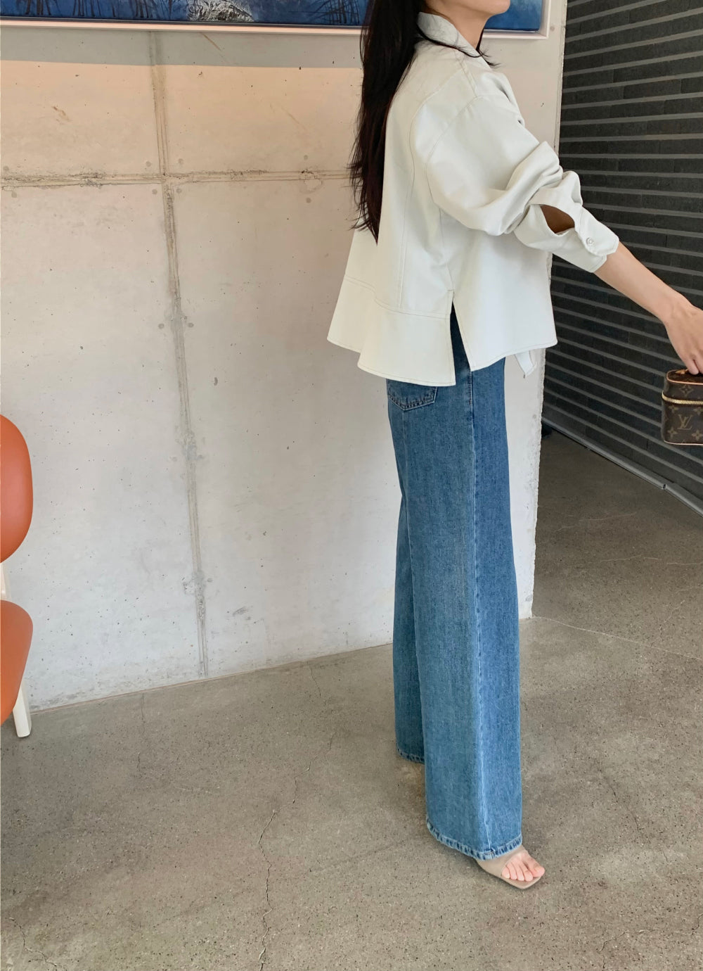 - Lightweight denim shirt with a jacket-like silhouette
