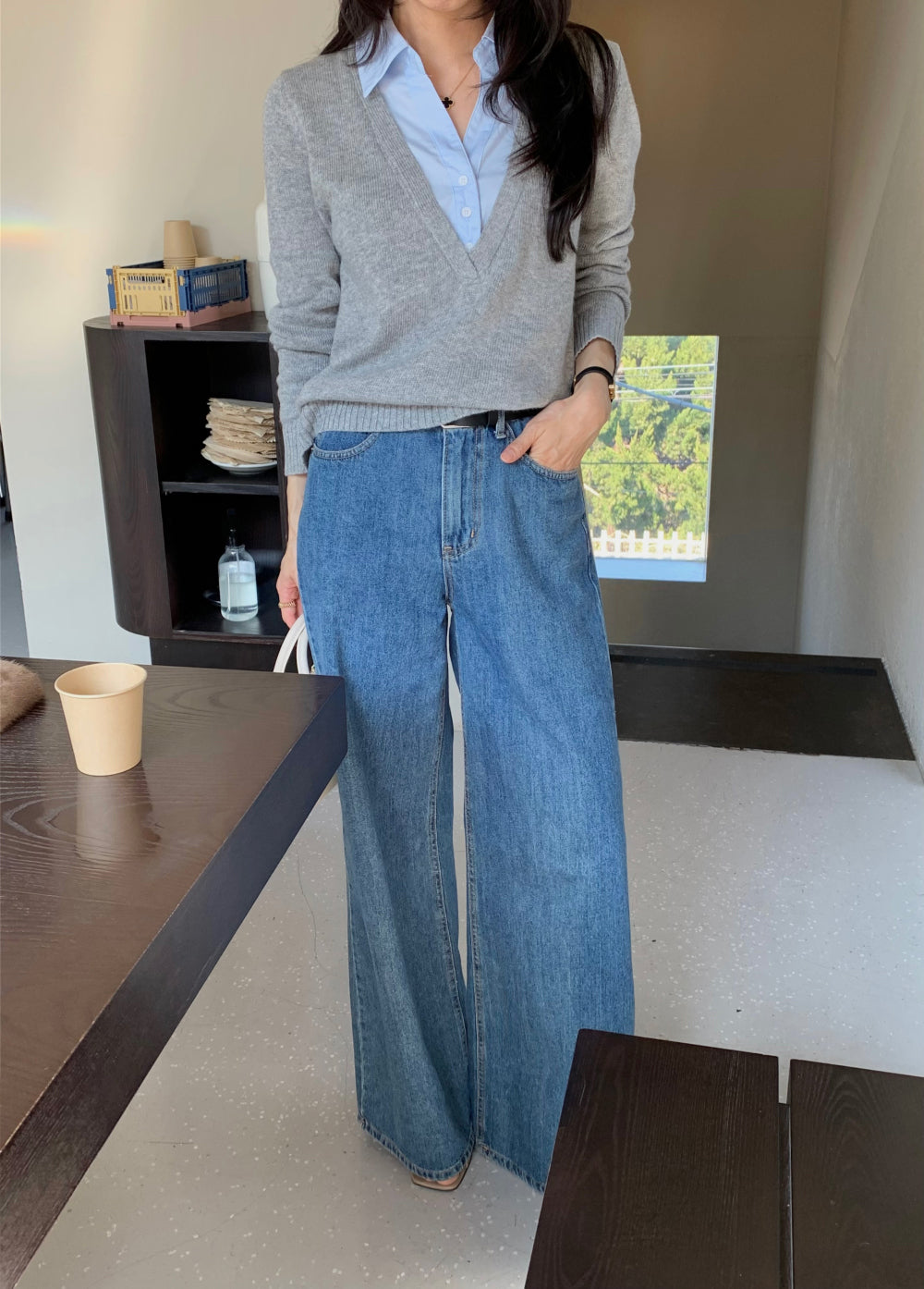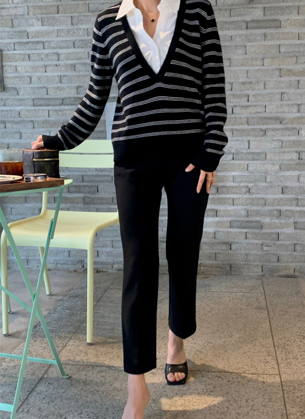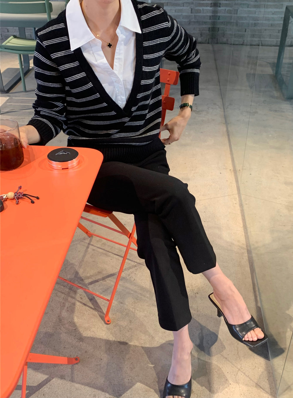 편안하고 넉넉한 핏으로 디자인되었으며, 깊은 V넥 라인은 상체를 슬림하게 보이게 하는 효과를 줍니다.