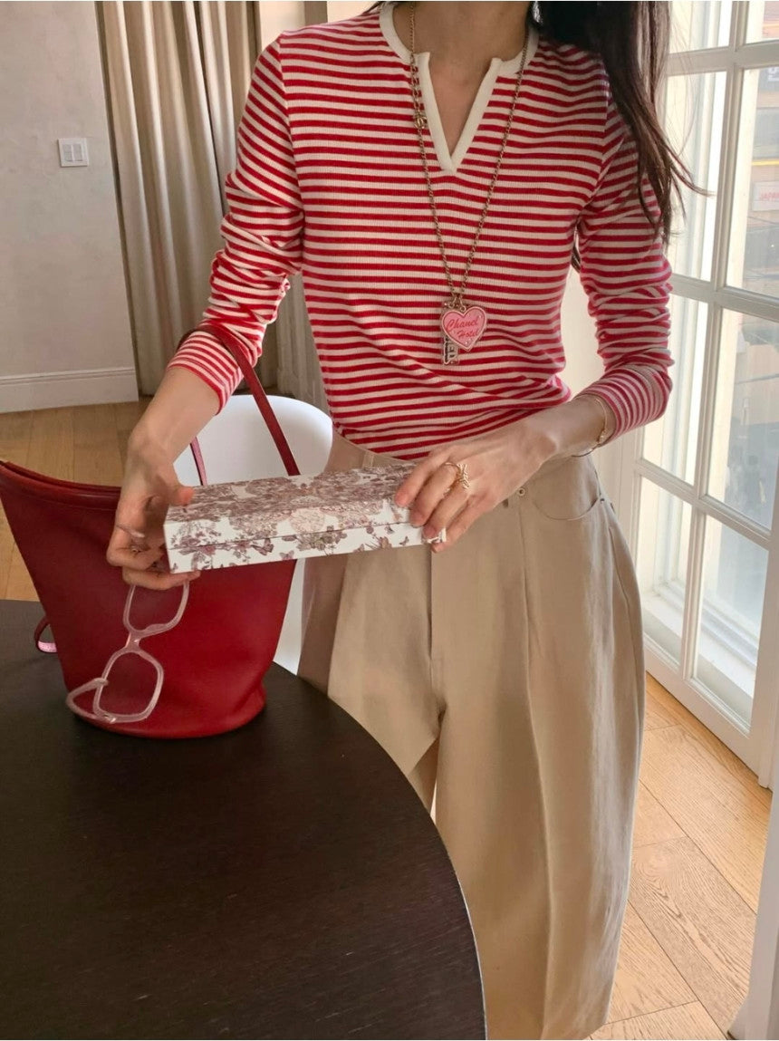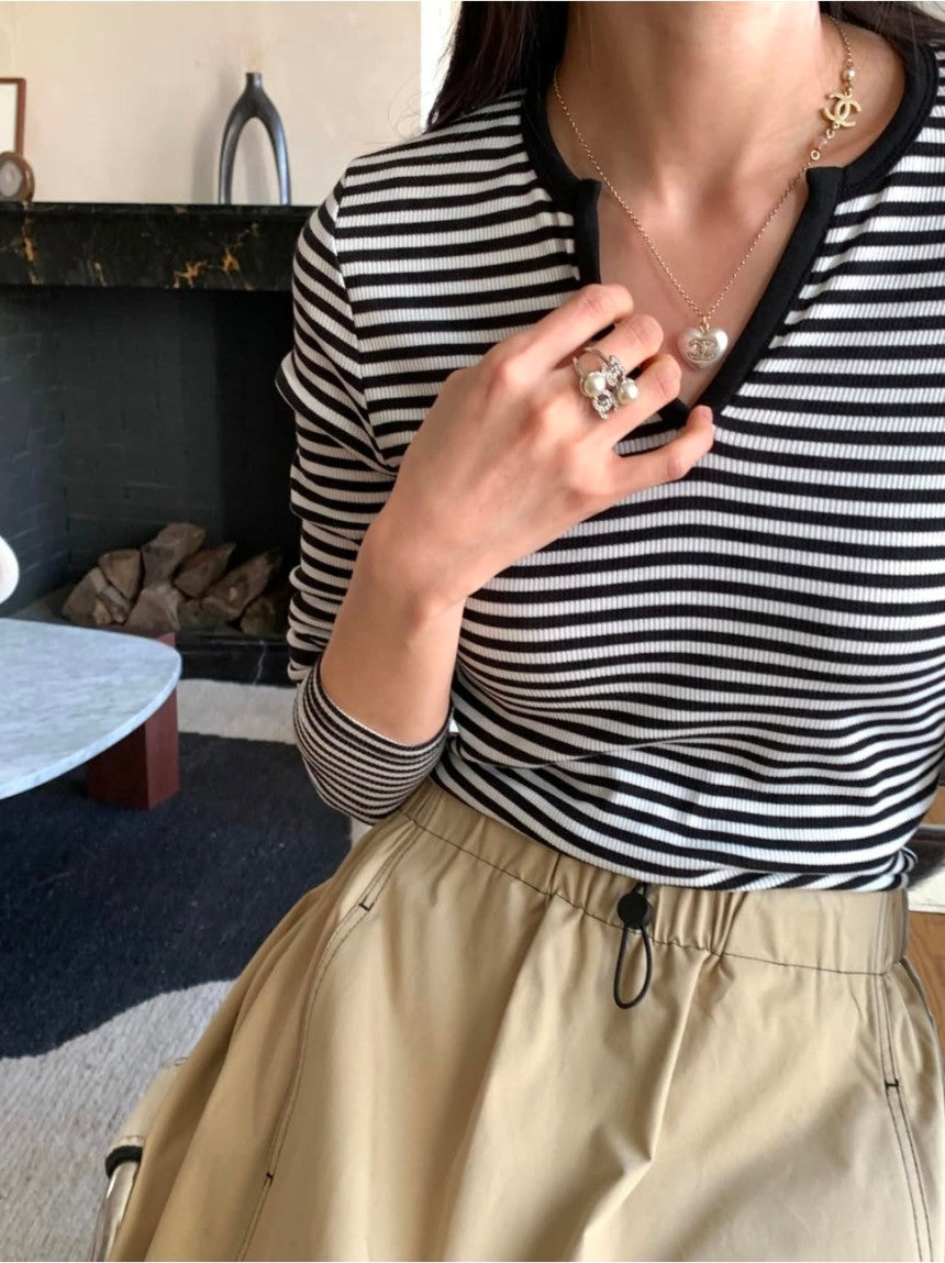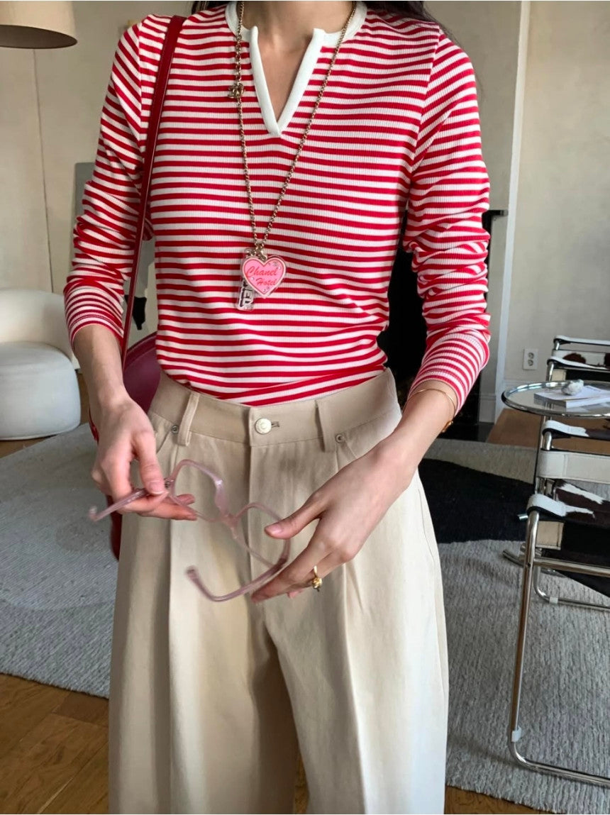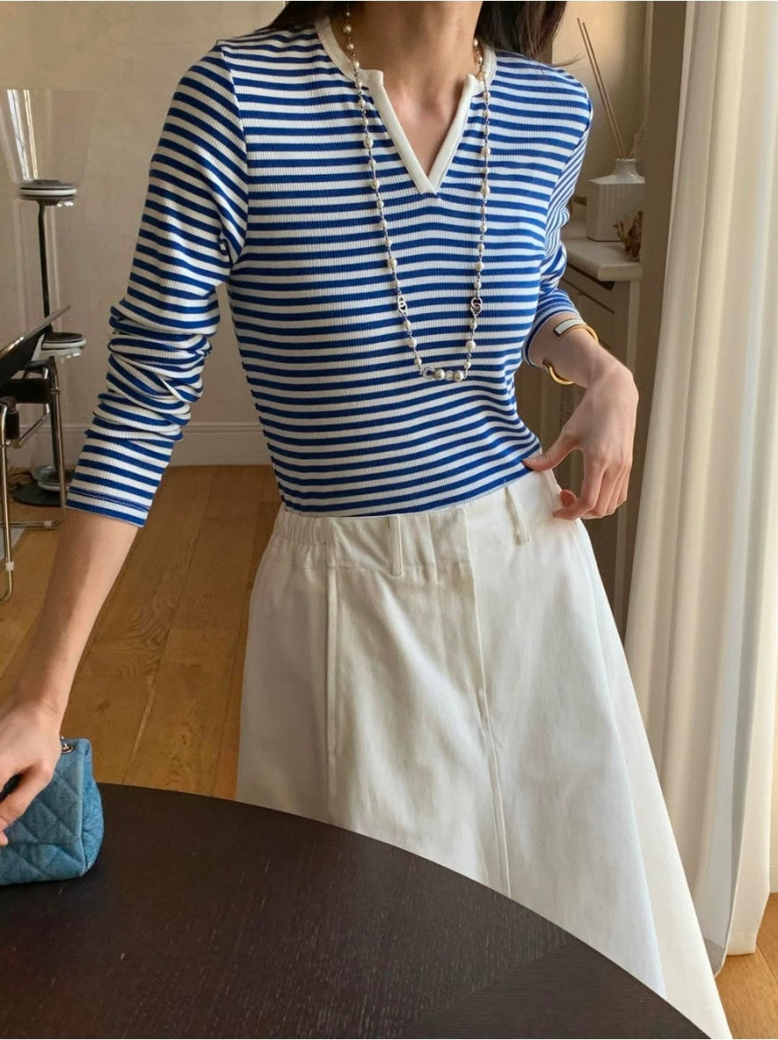 *스트라이프 브이 티셔츠
