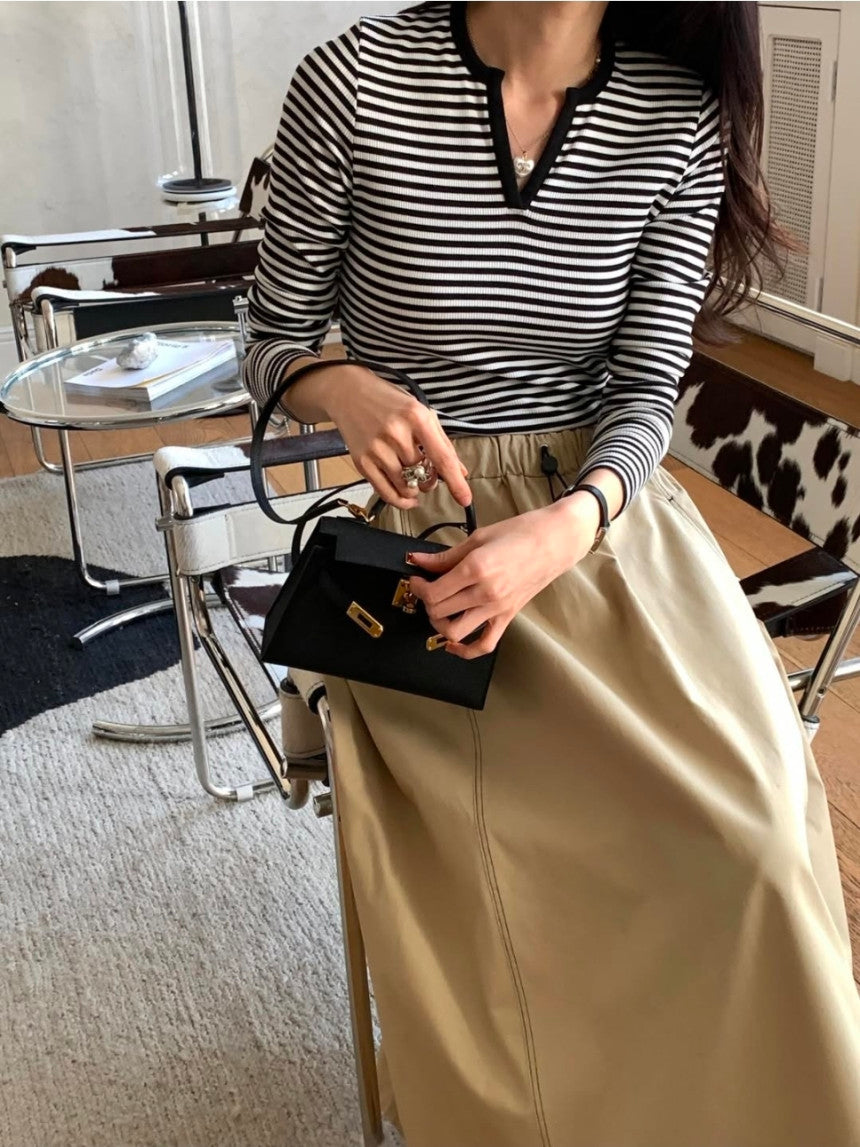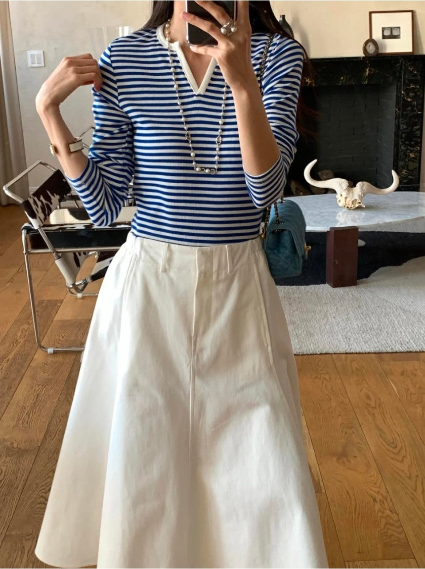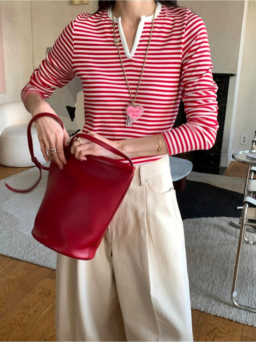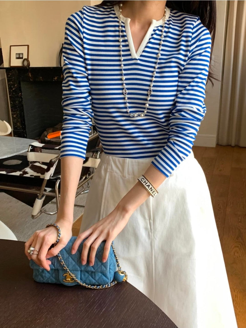 *스트라이프 브이 티셔츠